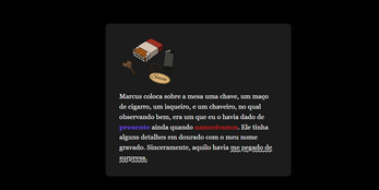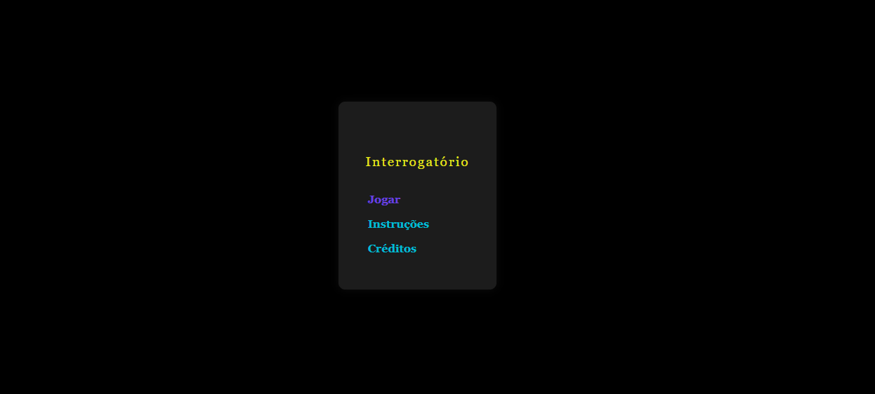 Hi Tatau! Feeling extra cheery today, I decided to play your game, Interrogatorio, that you made all by yourself in Twine, and honestly, I wish I could play it. Now, I completely understand that you're from Brazil, but I wish that there was some sort of English version for the game, so I can actually play your game and be positive about it. Still an interesting game, however!