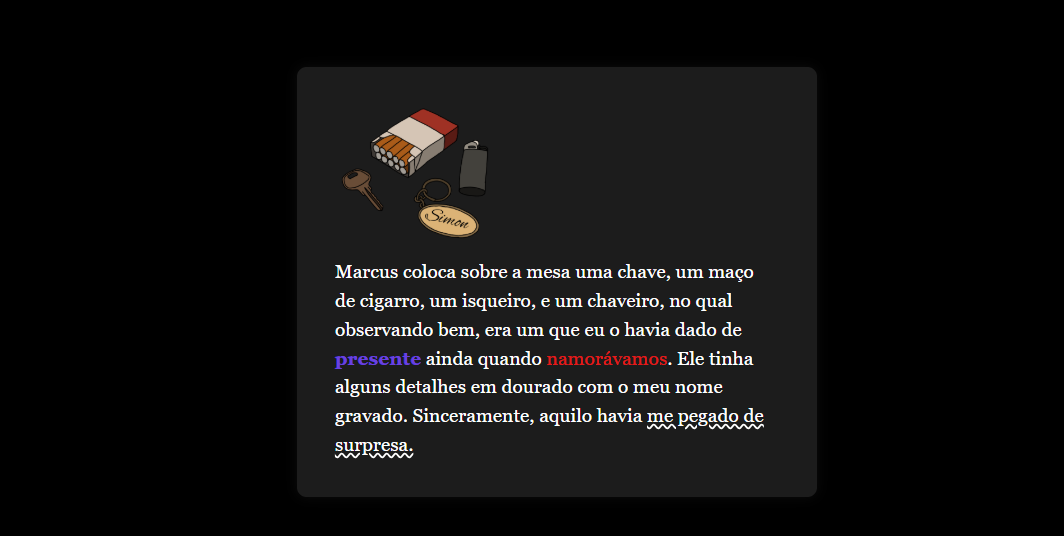 Este jogo foi desenvolvido no Twine como uma história interativa de ficção construída a partir de hipertexto. Trata-se de um trabalho acadêmico realizado para a Universidade Federal de Pelotas (UFPel).